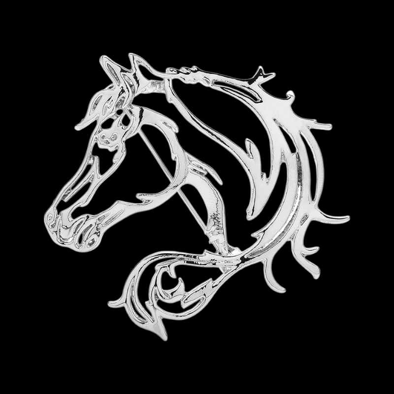 Almandin is a horse head brooch. Perfect for on a suit jacket, top, dress or hat.