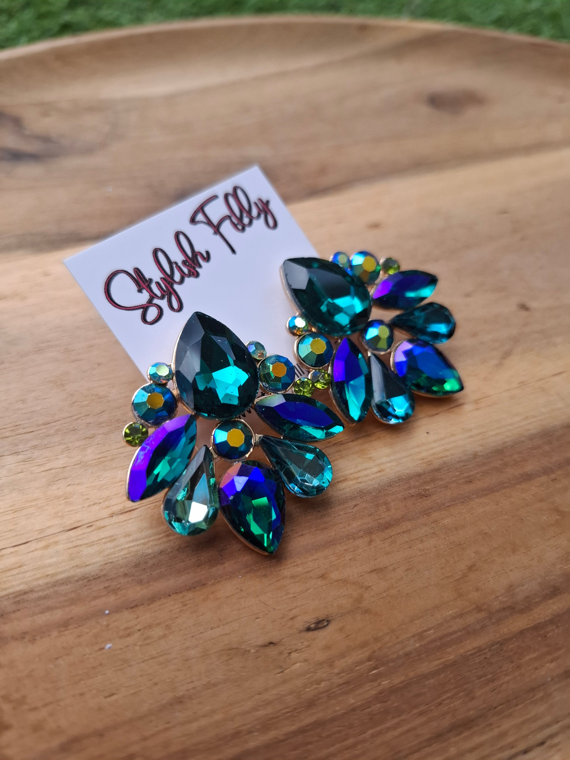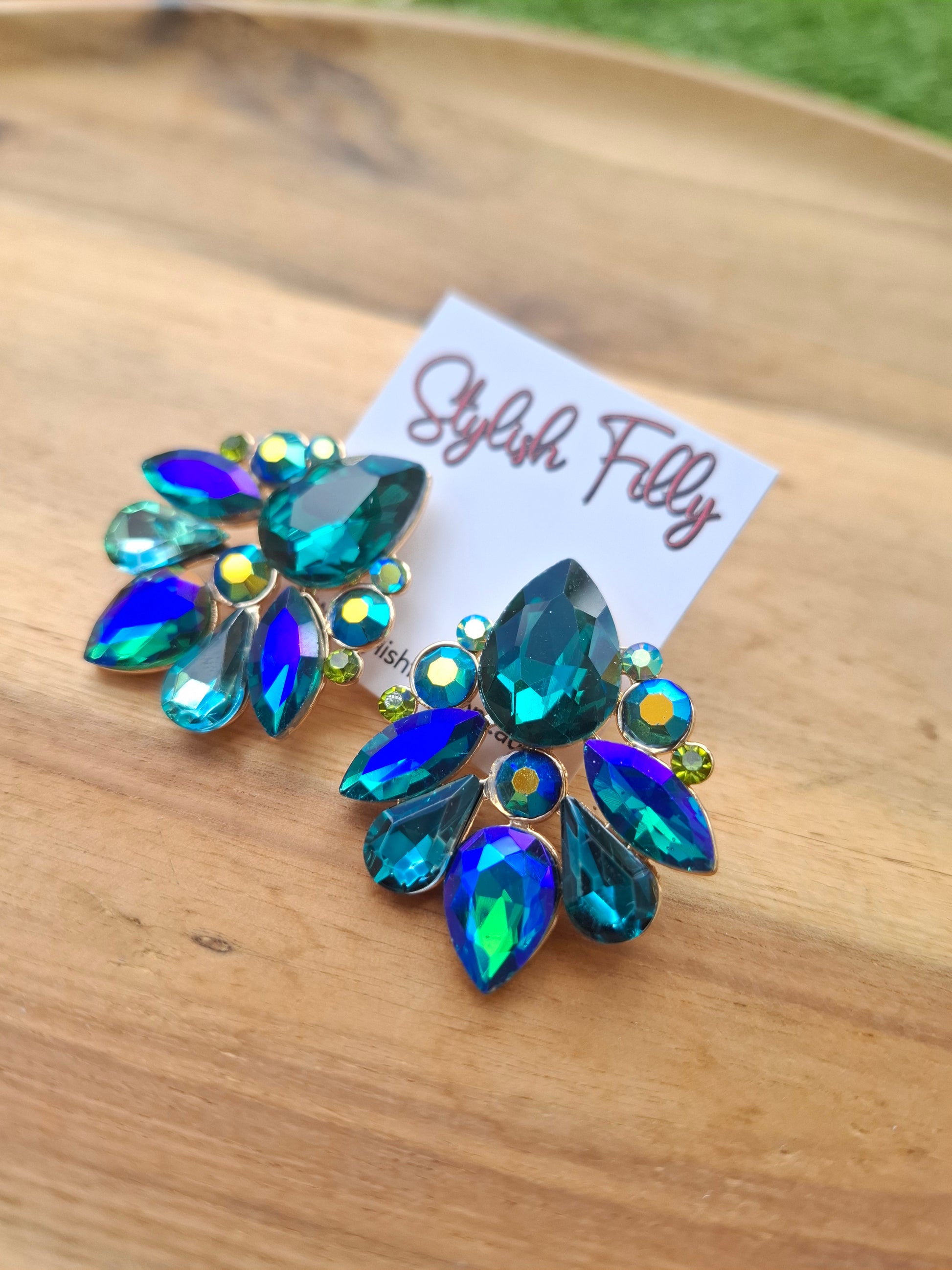 Mali is a blue and green rhinestone stud.